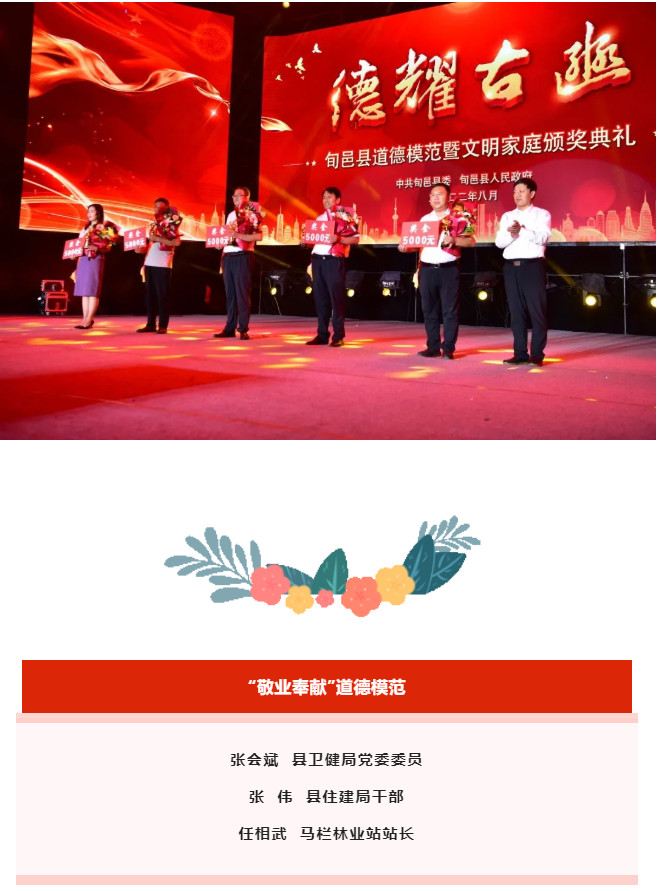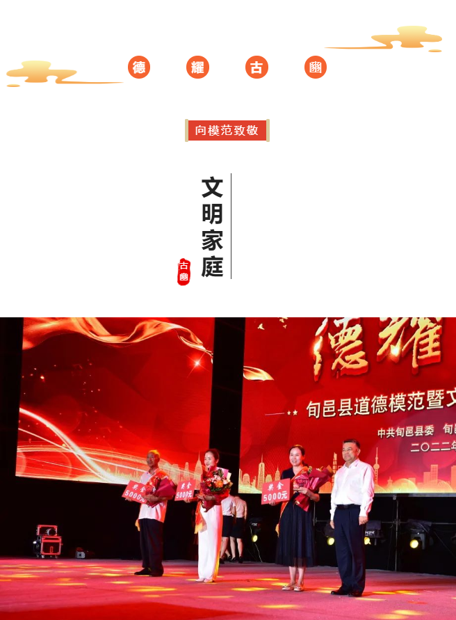 8月15日晚,由中共旬邑县委、旬邑县人民政府主办,县委宣传部、县文明办承办的“德耀古豳”旬邑县道德模范暨文明家庭颁奖典礼在县体育场举行。